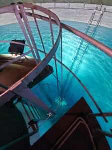 Pour 9 forages sur 10, l’eau est envoyée dans une bâche de mélange, permettant de mélanger des eaux de très bonne qualité avec des eaux de qualité moindre, afin de distribuer une eau conforme aux normes de qualité.